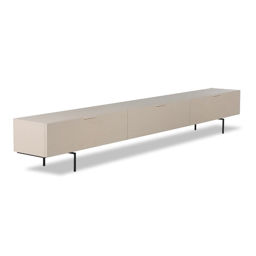 Although this TV unit has an ultra-modern feel to it, it is actually incredibly retro, thanks to its low profile and rounded handles. However, its fresh colour and metal legs give it a more contemporary look and feel. Perfect for hiding your equipment thanks to the central opening at the back.