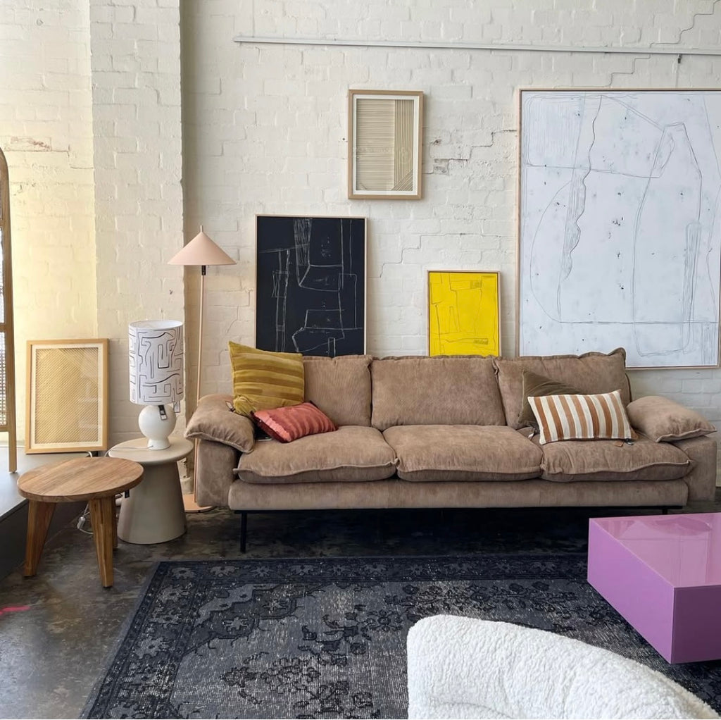 Retro Sofa: 3- Seats, Corduroy Rib, Brown