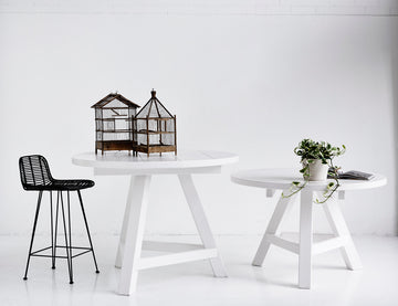 The House of Orange elegant yet robust Balmain Round Dining Table. This round trestle table / round dining table is also available in rectangular and made to order with both dining and bar heights available.