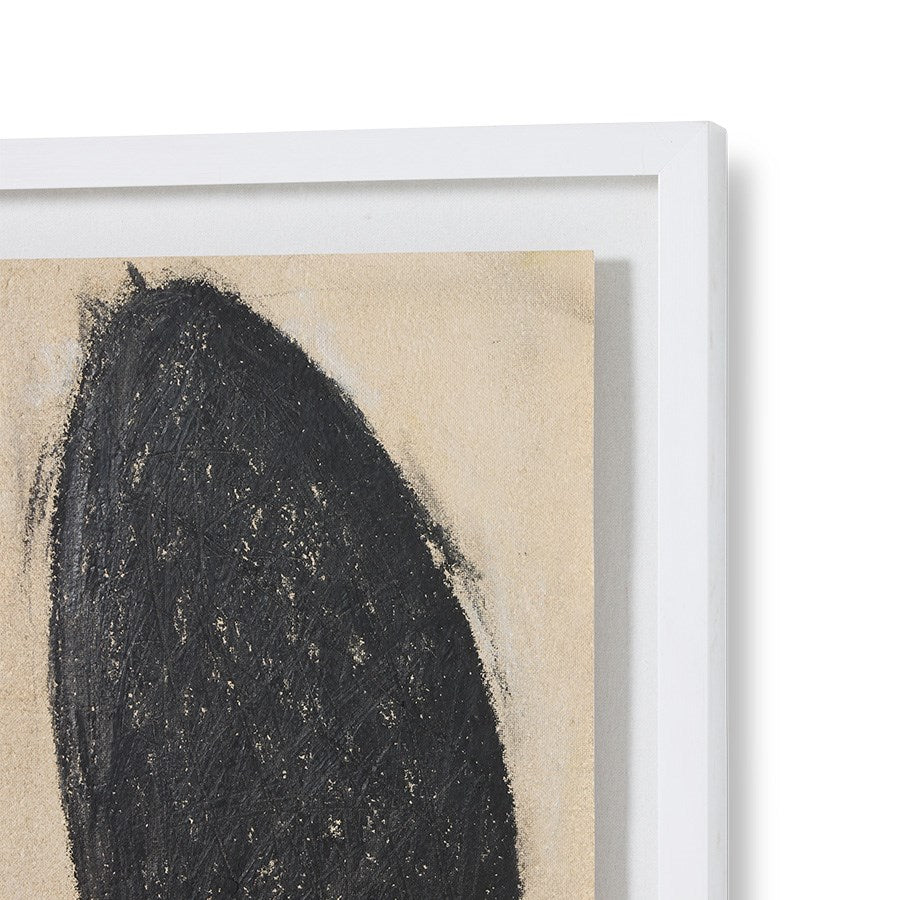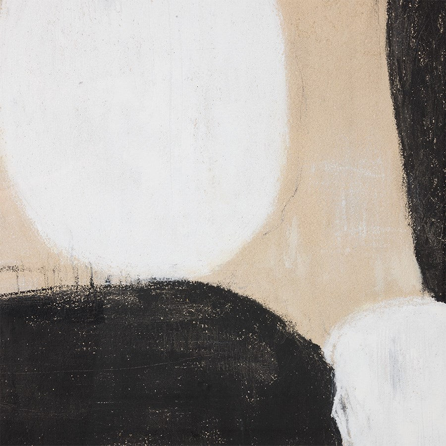Minimal in palette, maximal in expression. This abstract artwork combines a beige base with bold black and white tones, creating contrast through quick, intuitive brush strokes and grounded shapes. A striking piece that balances calm and energy in equal measure.