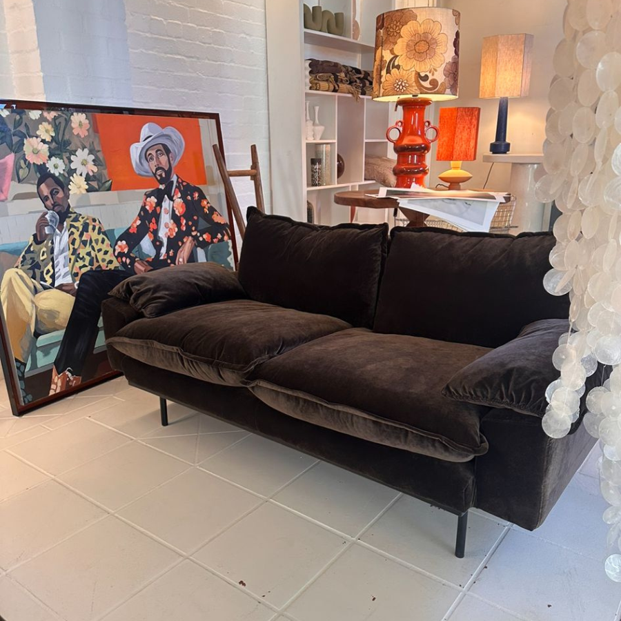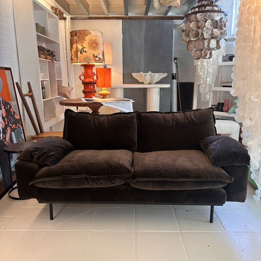 Retro Sofa: 2- Seats, Royal Velvet, Espresso