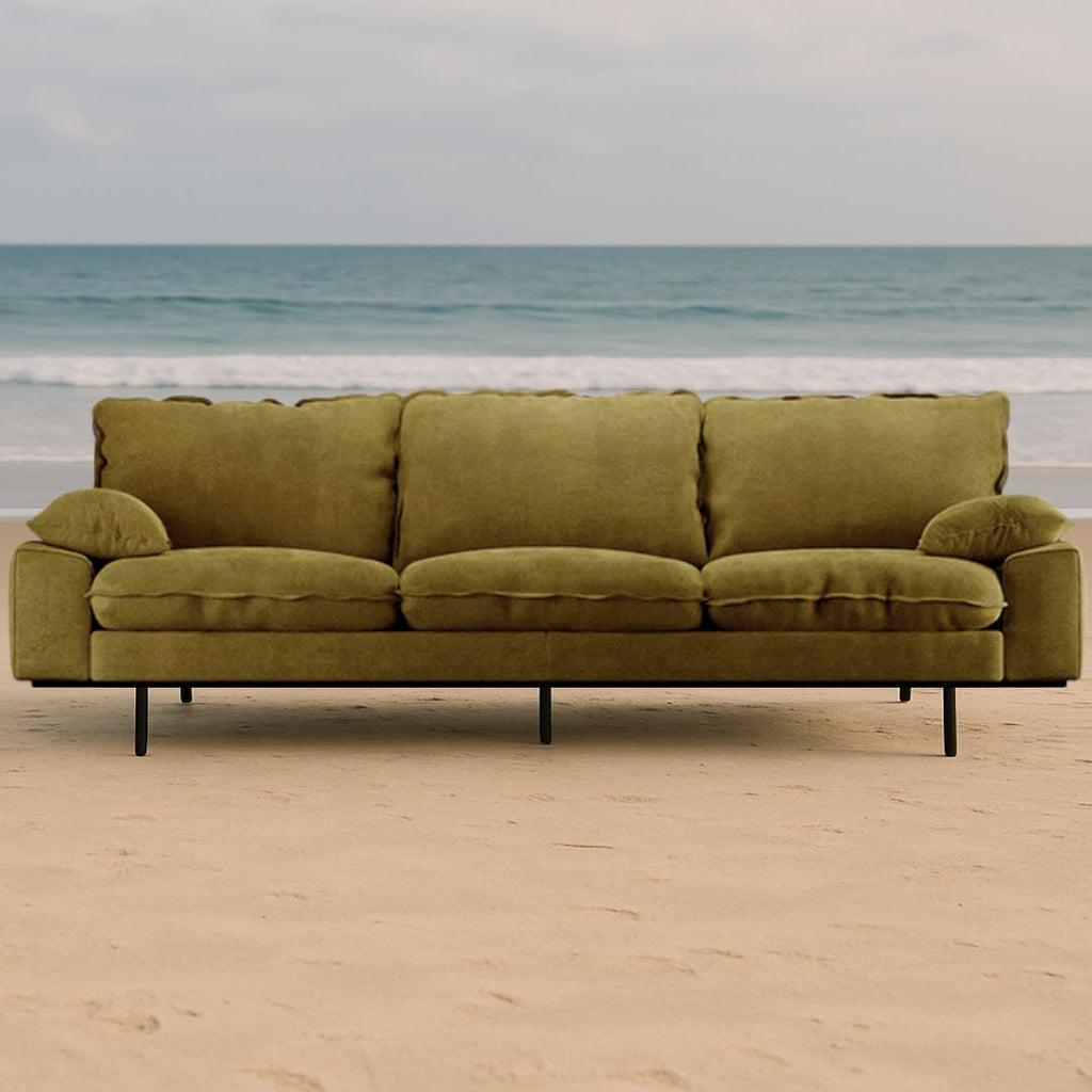 Retro Sofa: 3-Seats, Royal Velvet, Olive
