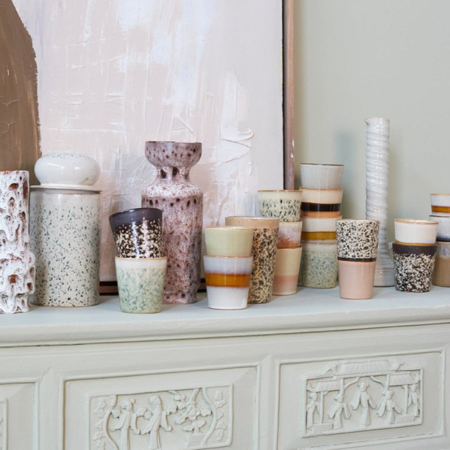 HKliving’s Dutch design brings elegance to dining with the 70s ceramics collection, crafted for those who appreciate timeless beauty. Each bowl, plate, mug, and cup features a handmade finish, making every piece unique. With durable craftsmanship and a reactive glaze for organic, earthy character, these ceramics are as practical as they are beautiful—safe for all foods, microwaveable, and dishwasher-friendly, enhancing your table and home for years.