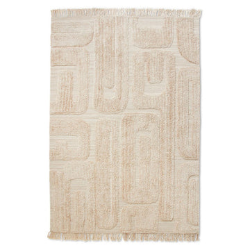 Inspired by the soft hues and delicate textures of limestone, this rug serves as a stunning natural foundation for your coffee table, dining area, or bedroom.